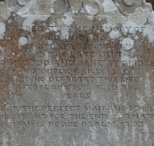 The headstone over John Dodd of Ardara, in St John’s churchyard, Killybegs.