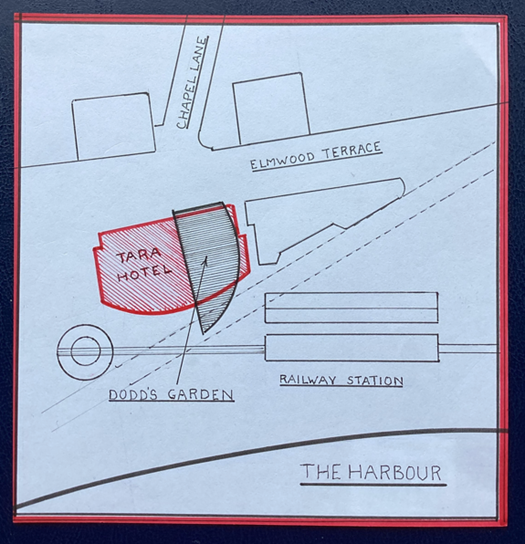 Composite map showing Dodd’s Garden and the Tara Hotel footprint. (Map not drawn by measurements)