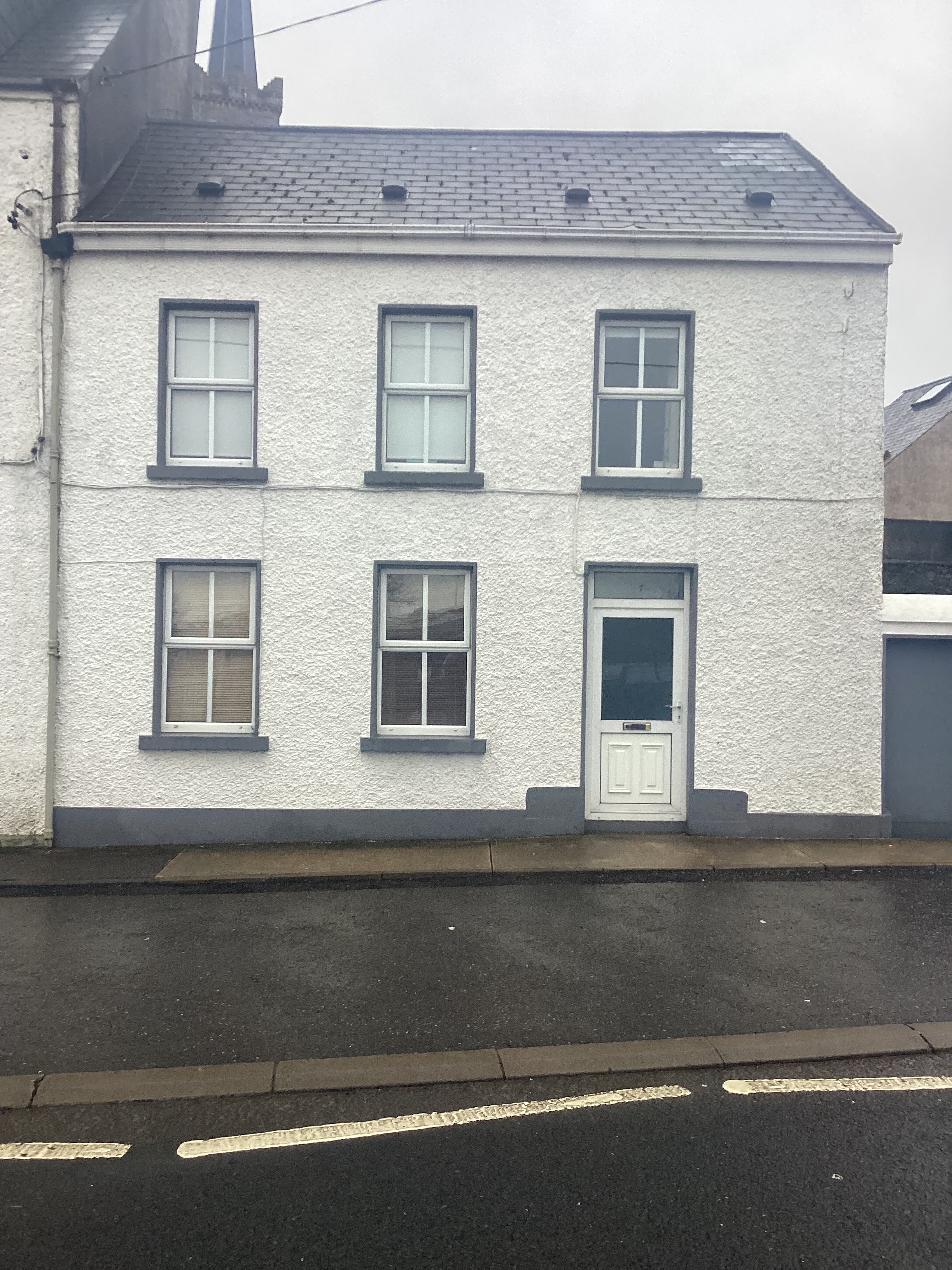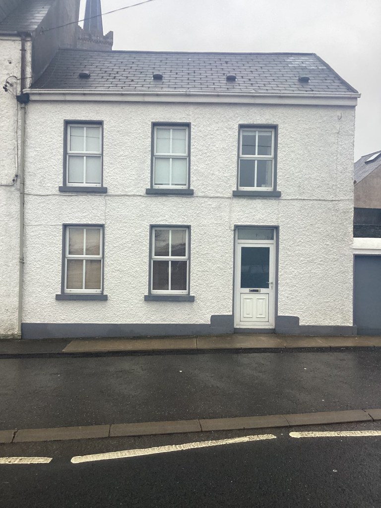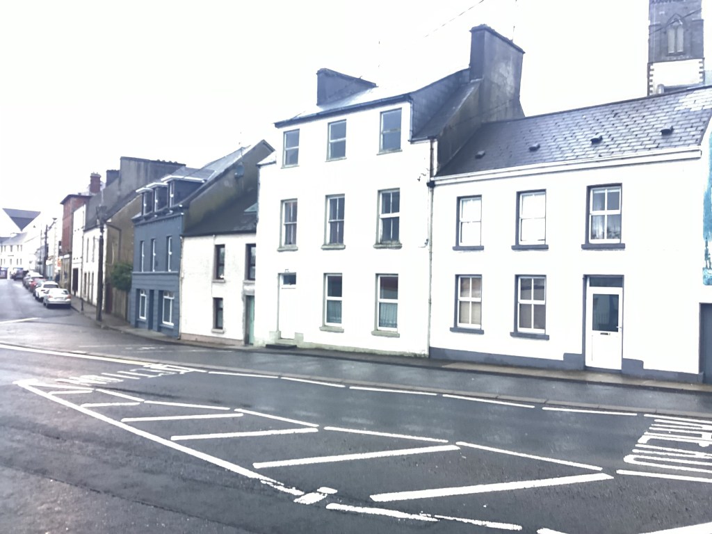 The first house – that of Una Cunningham – with the Armada mural on the gable – gives the appearance of having been built not so very long ago. This may be true because early 19th century maps show a row of small houses fronting the street. Griffith’s Valuation of Killybegs, 1857, shows a similar row of houses, with a vacant site at the corner of Mulreanys’ Brae, much as it is today. It is likely that House No. 1 in its present form was rebuilt on the site of an earlier, smaller house. There is documentary evidence that Connell O’Byrne was in possession of this site and its house(s) since 1856. O’Byrne was also closely associated with House No. 2, but that will be dealt with later.