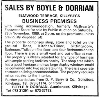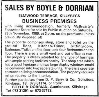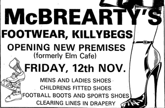McBrearty’s Footwear. The premises was sold in 1981 to Conor McBrearty who began trading as McBrearty’s Footwear in November 1982.